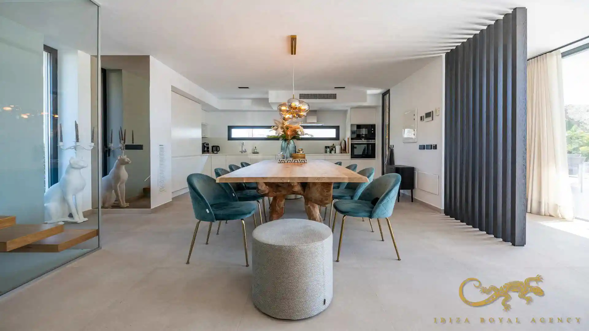 Exclusieve luxe villa in Ses Torres, Ibiza, op loopafstand van de baai van Talamanca en het charmante dorp Jesús. Deze unieke residentie combineert modern design, een bohemien sfeer en eersteklas voorzieningen, waaronder een privéfitnessruimte, een spectaculaire club, een zwembad met glazen wand en een dakterras met buitenkeuken en adembenemend uitzicht op Dalt Vila.