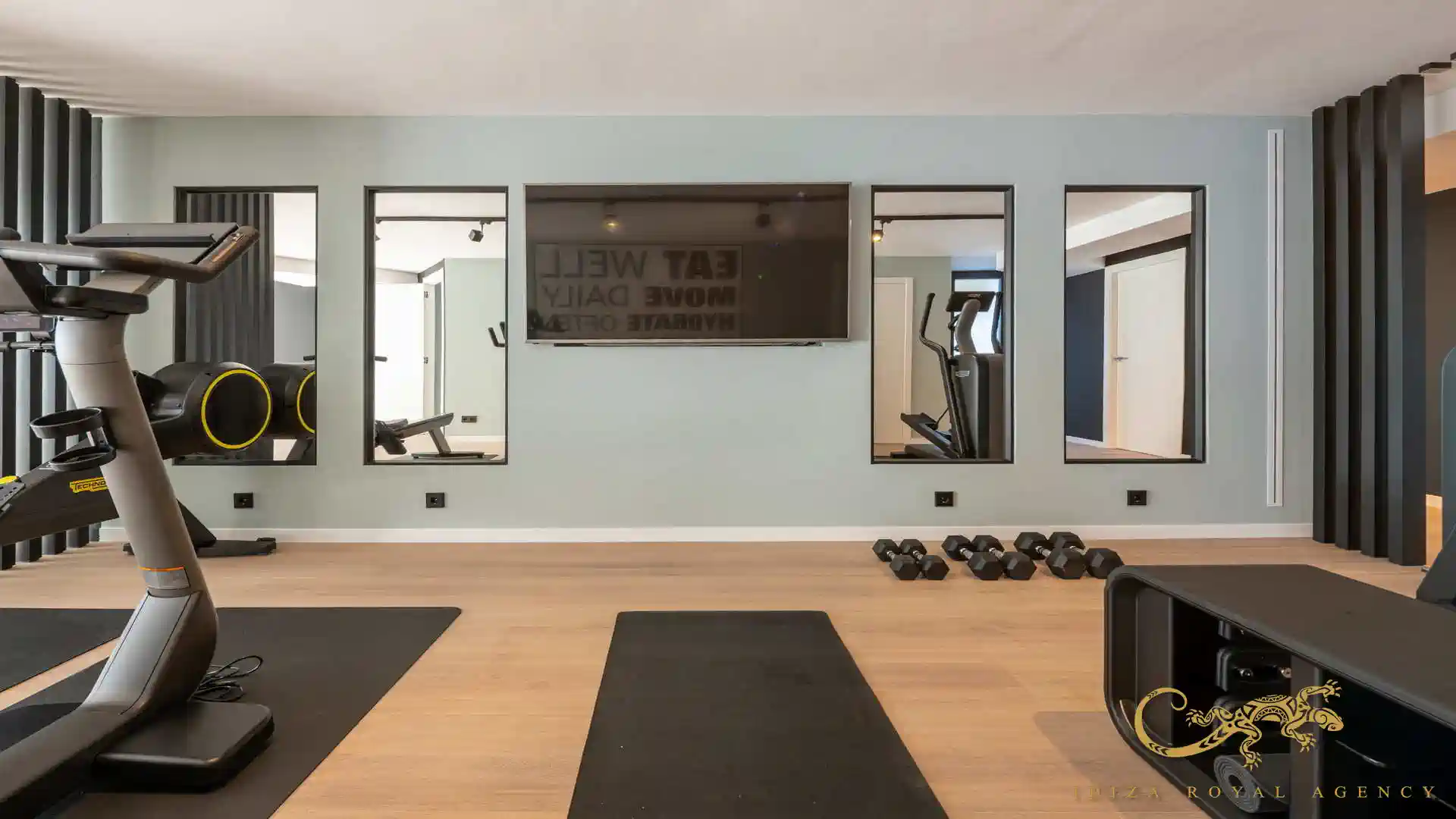 Souterrain (160 m²): Fitnessruimte, privéclub, zesde slaapkamer met badkamer en suite.