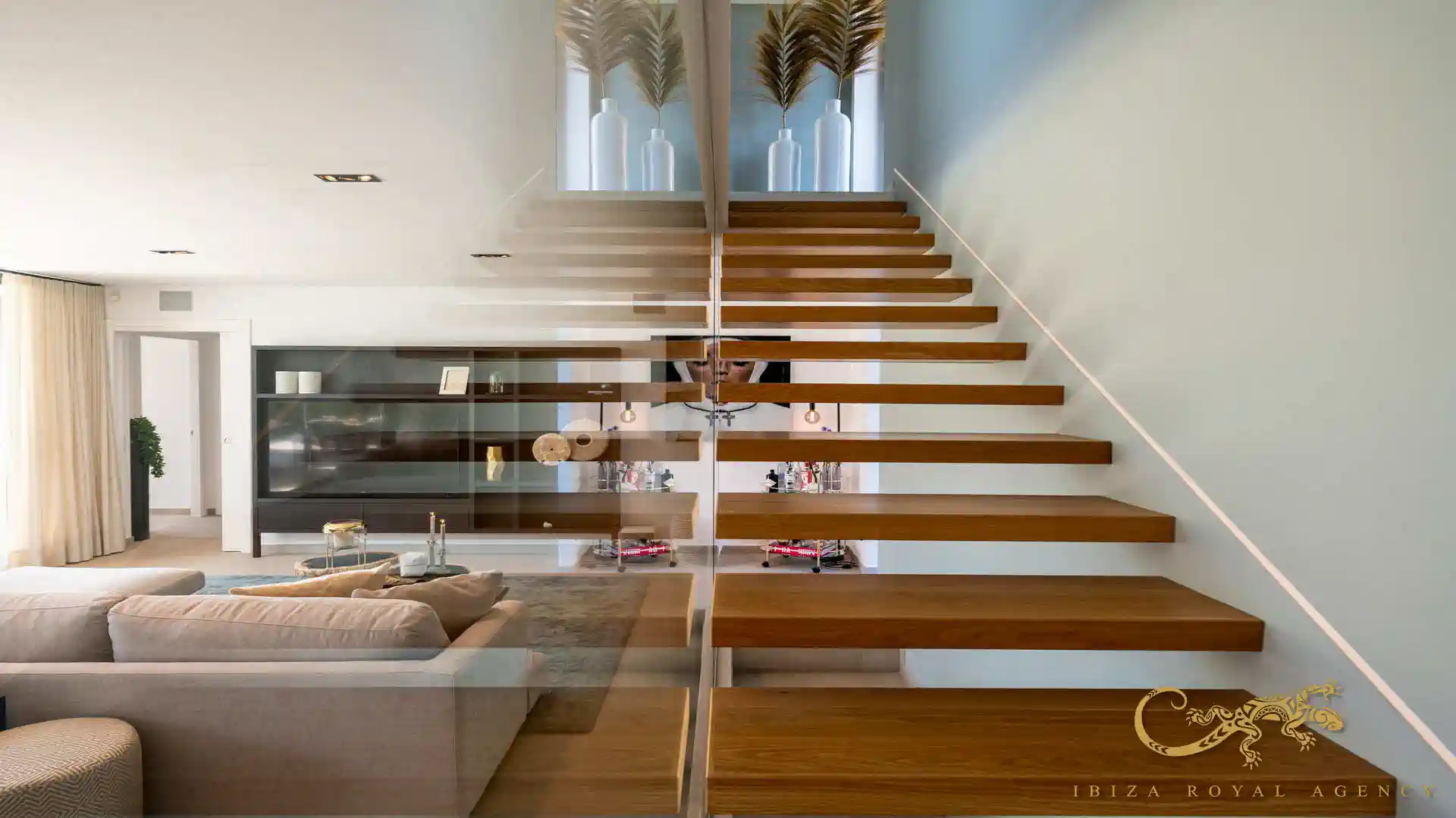 Het architectonische ontwerp van de villa valt op door zijn moderne lijnen en warme, bohemien sfeer die zo kenmerkend is voor Ibiza. De woning is verdeeld over vier niveaus en heeft een totale woonoppervlakte van circa 490 m², met lichte en ruime vertrekken die luxe en comfort uitstralen.