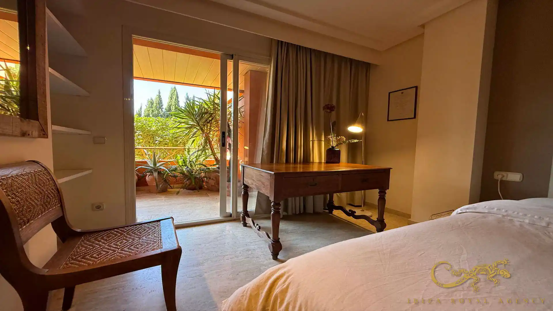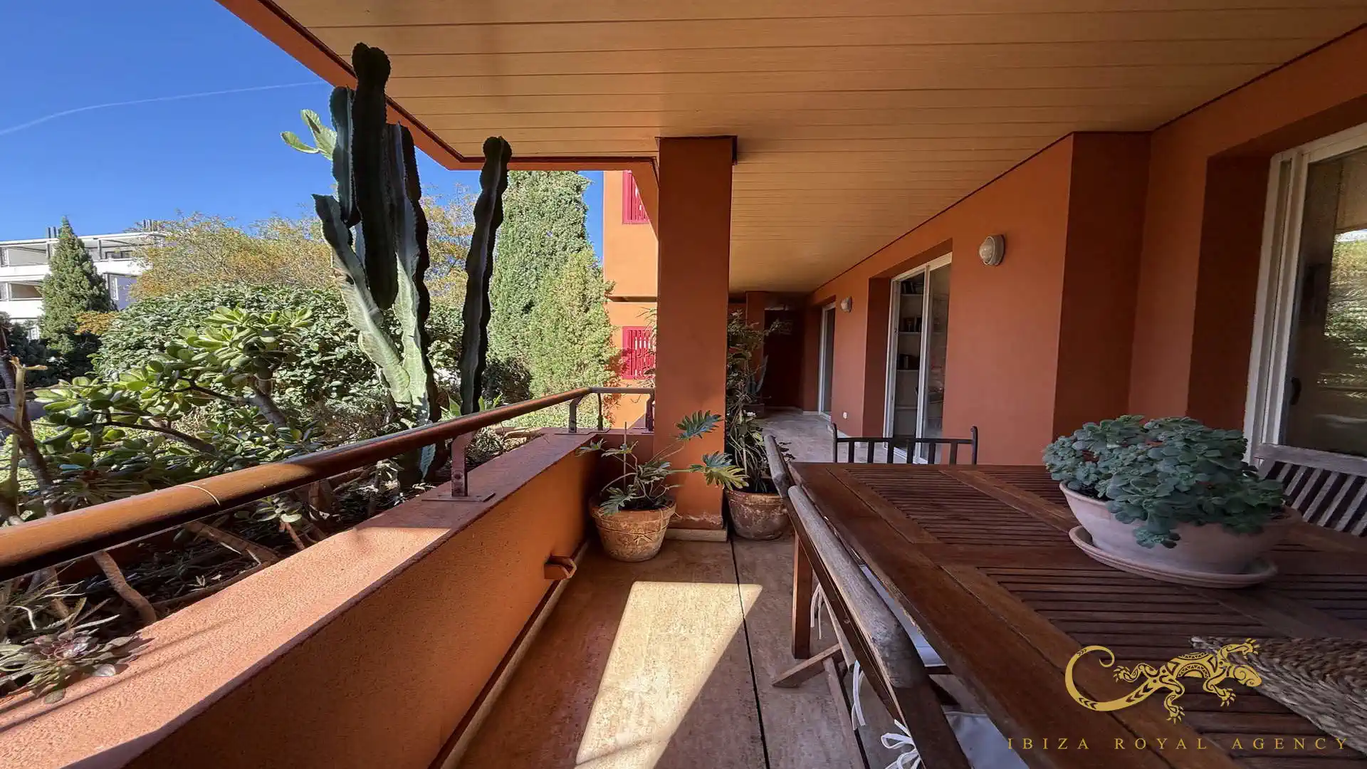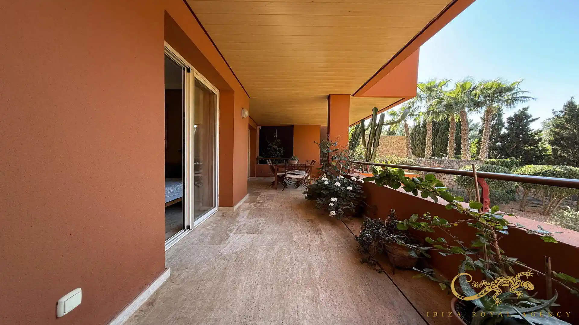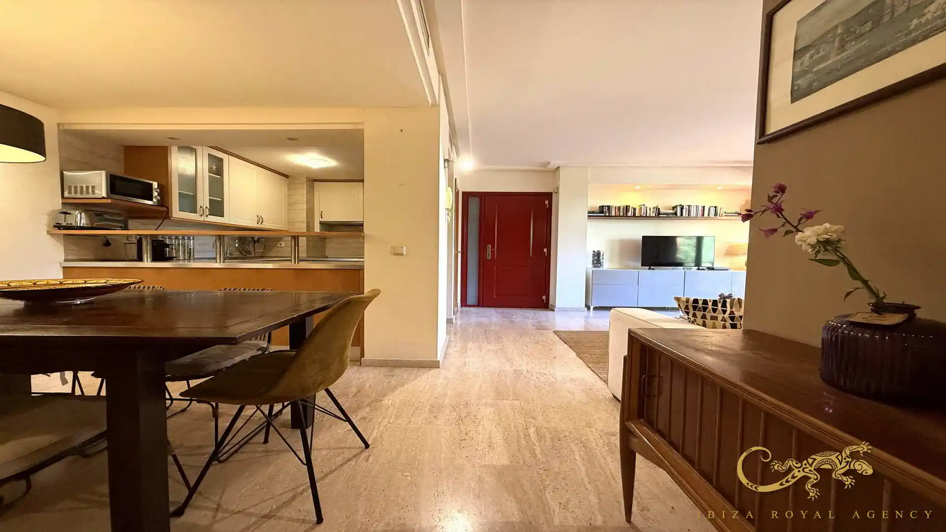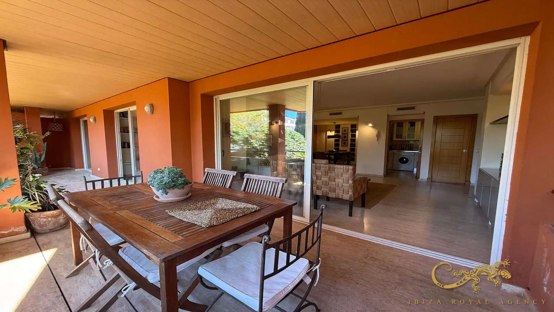 De woon- en eetkamer vormt het hart van de woning en biedt directe toegang tot het privéterras. Deze buitenruimte is perfect om te ontspannen, te genieten van het mediterrane klimaat of buiten te dineren. De vloeiende overgang tussen binnen en buiten zorgt voor een aangename leefervaring en versterkt het gevoel van ruimte en comfort.