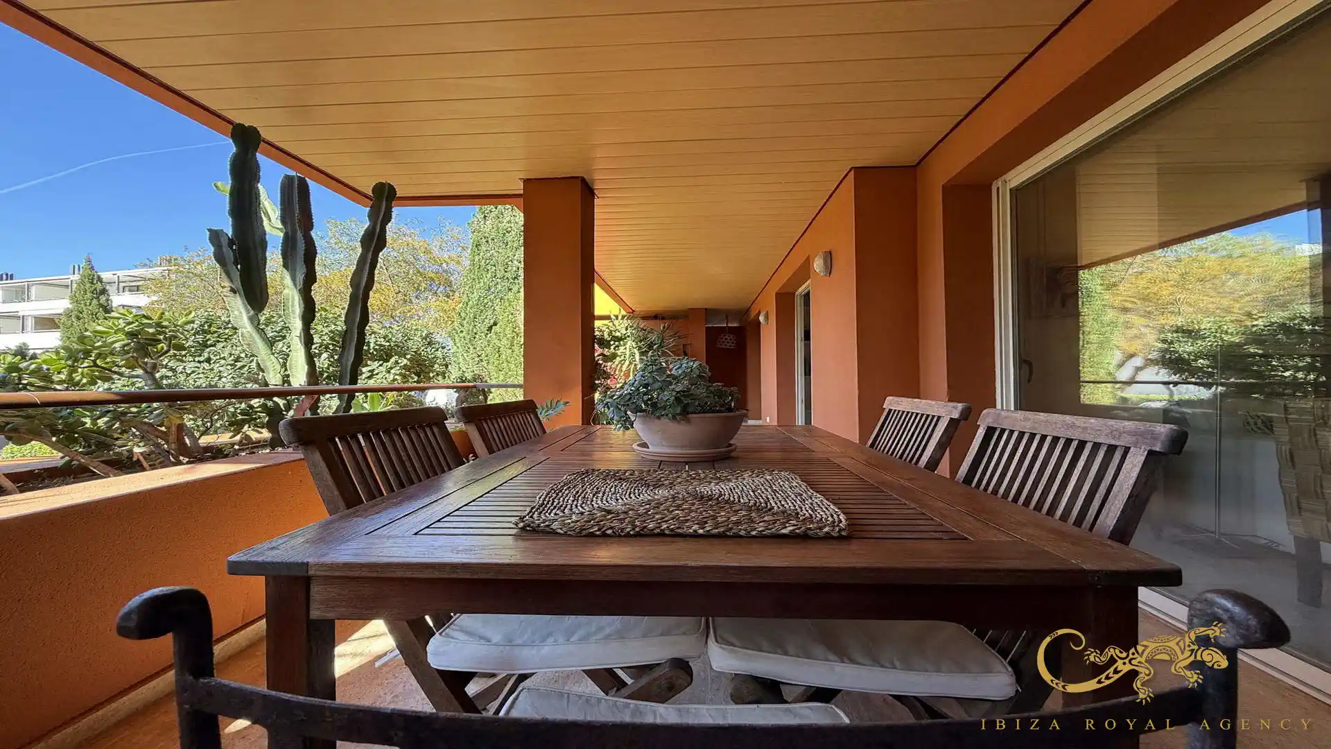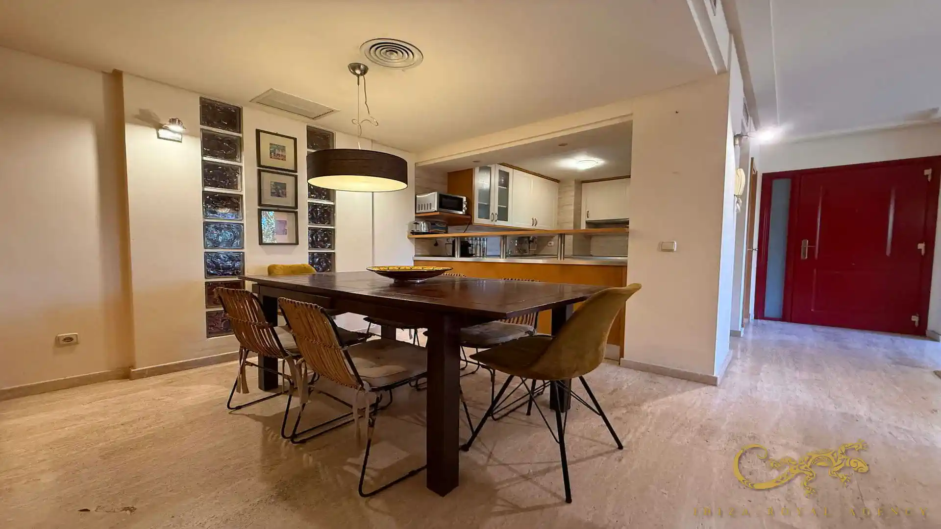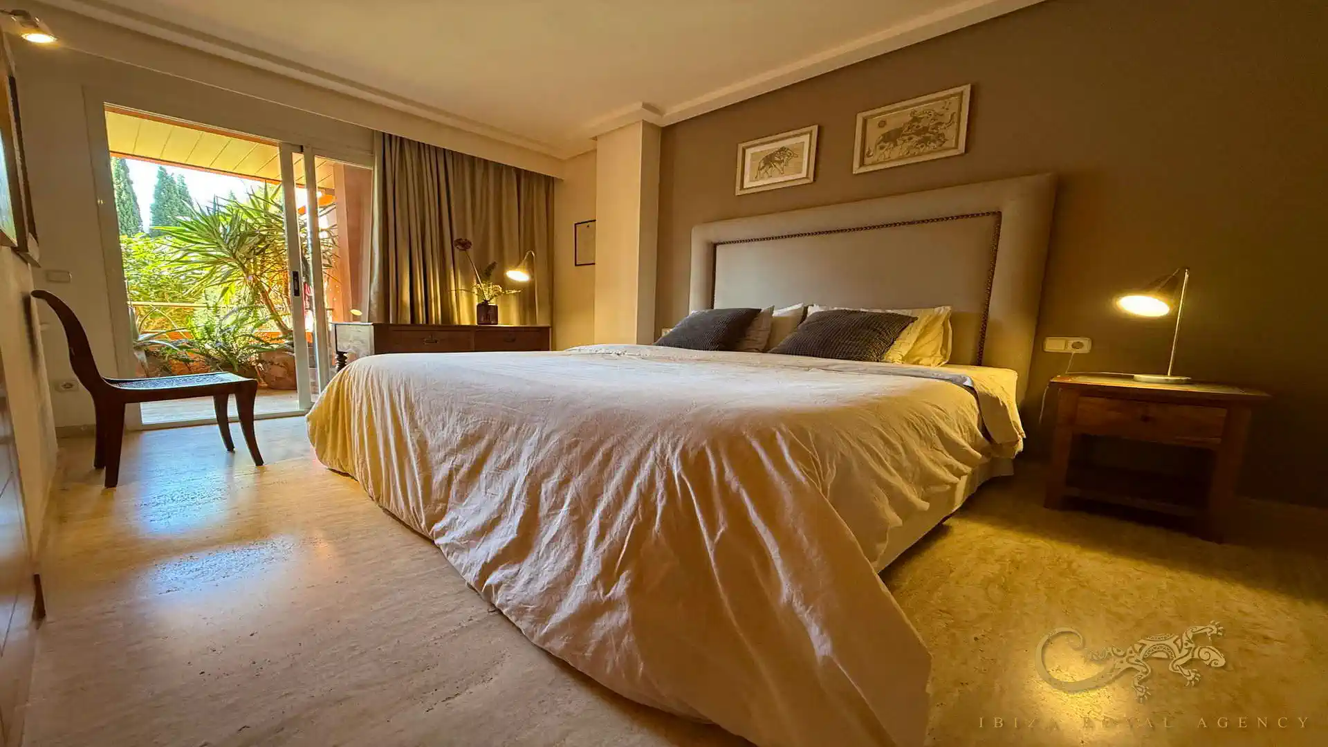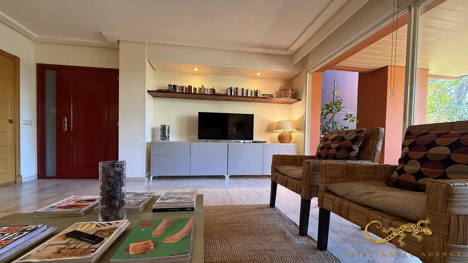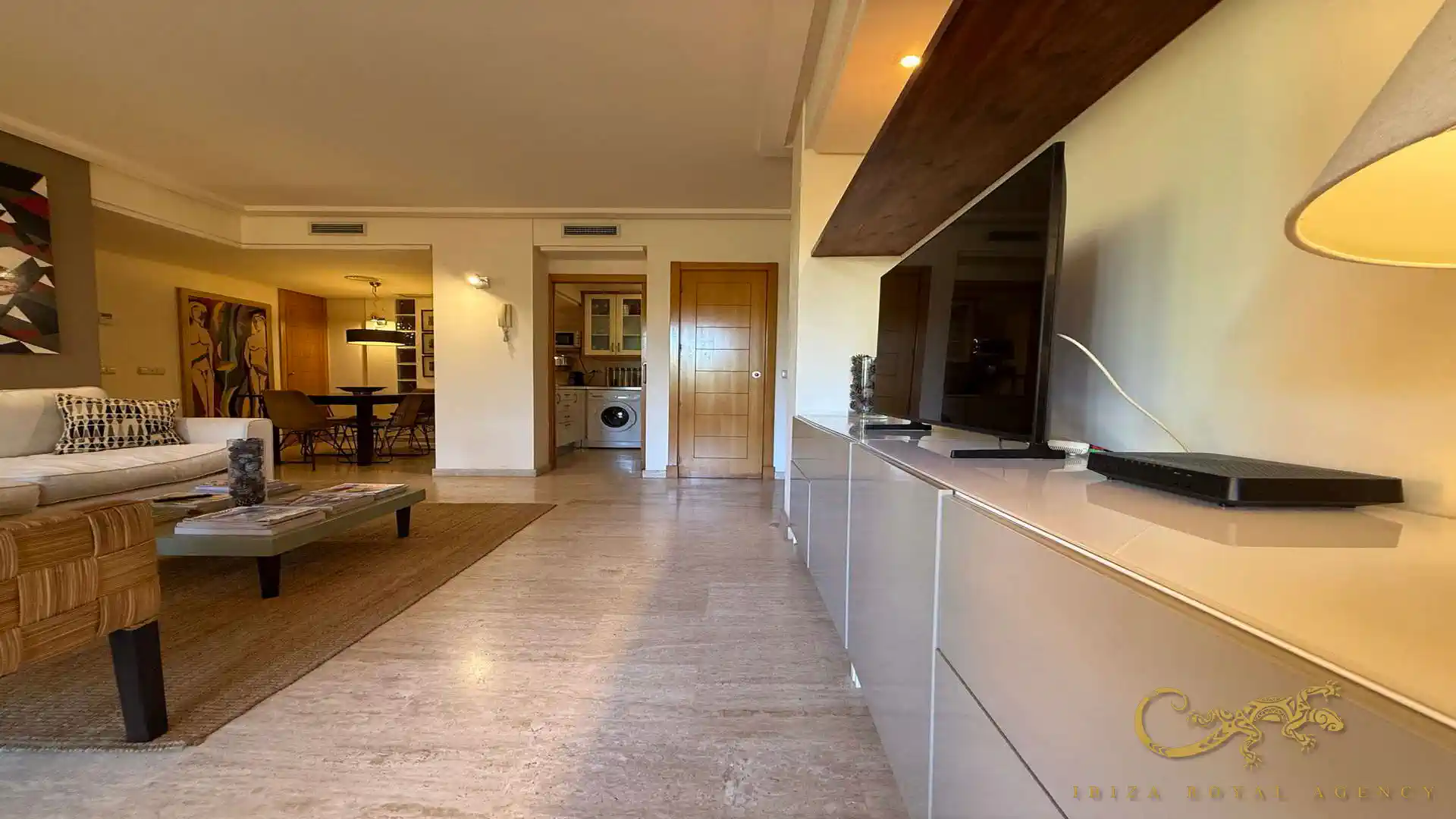 De woon- en eetkamer vormt het hart van de woning en biedt directe toegang tot het privéterras. Deze buitenruimte is perfect om te ontspannen, te genieten van het mediterrane klimaat of buiten te dineren. De vloeiende overgang tussen binnen en buiten zorgt voor een aangename leefervaring en versterkt het gevoel van ruimte en comfort.