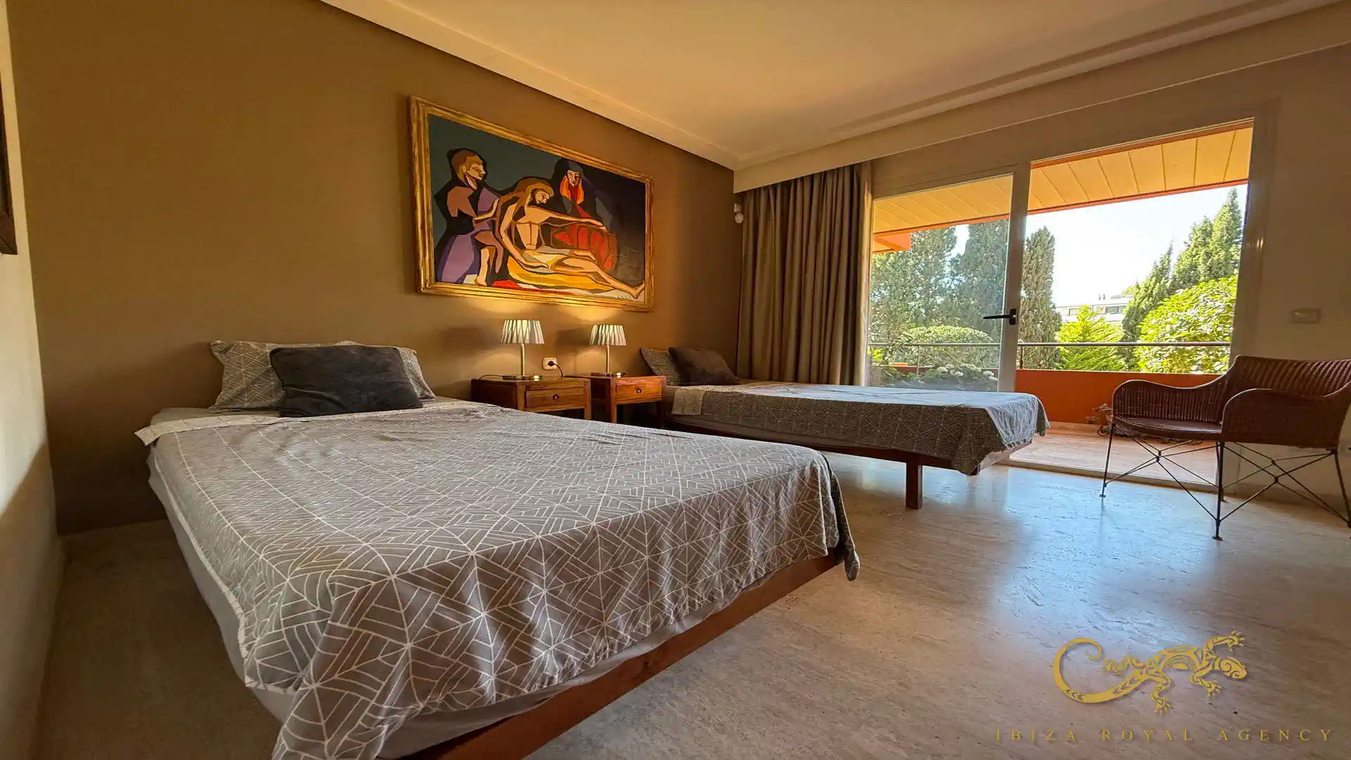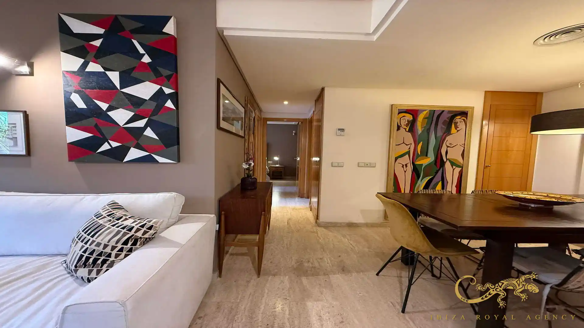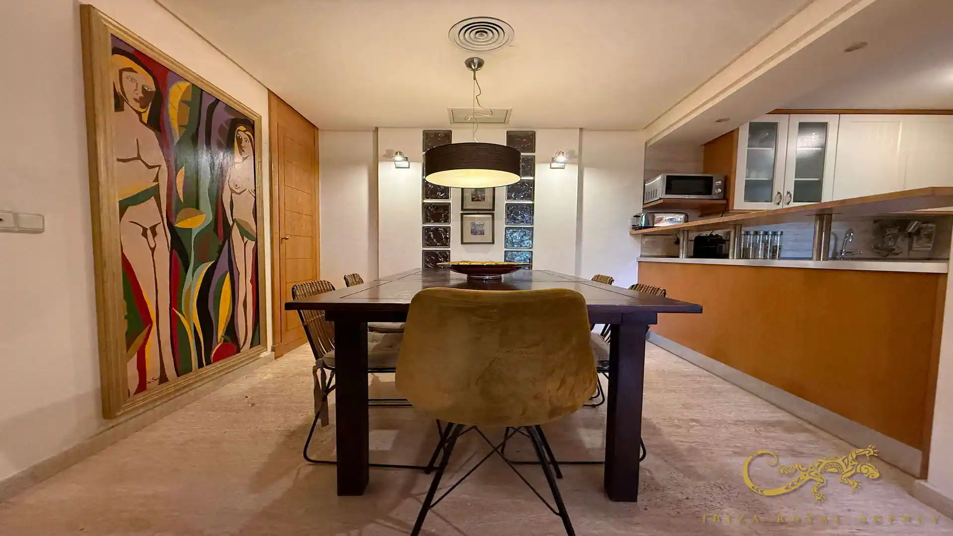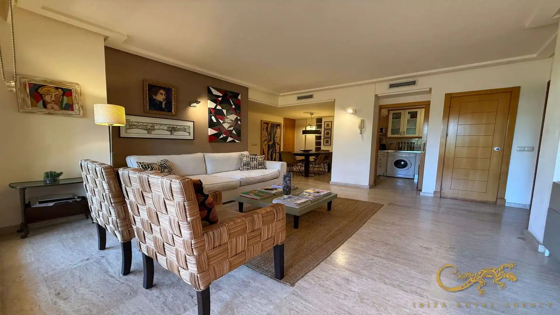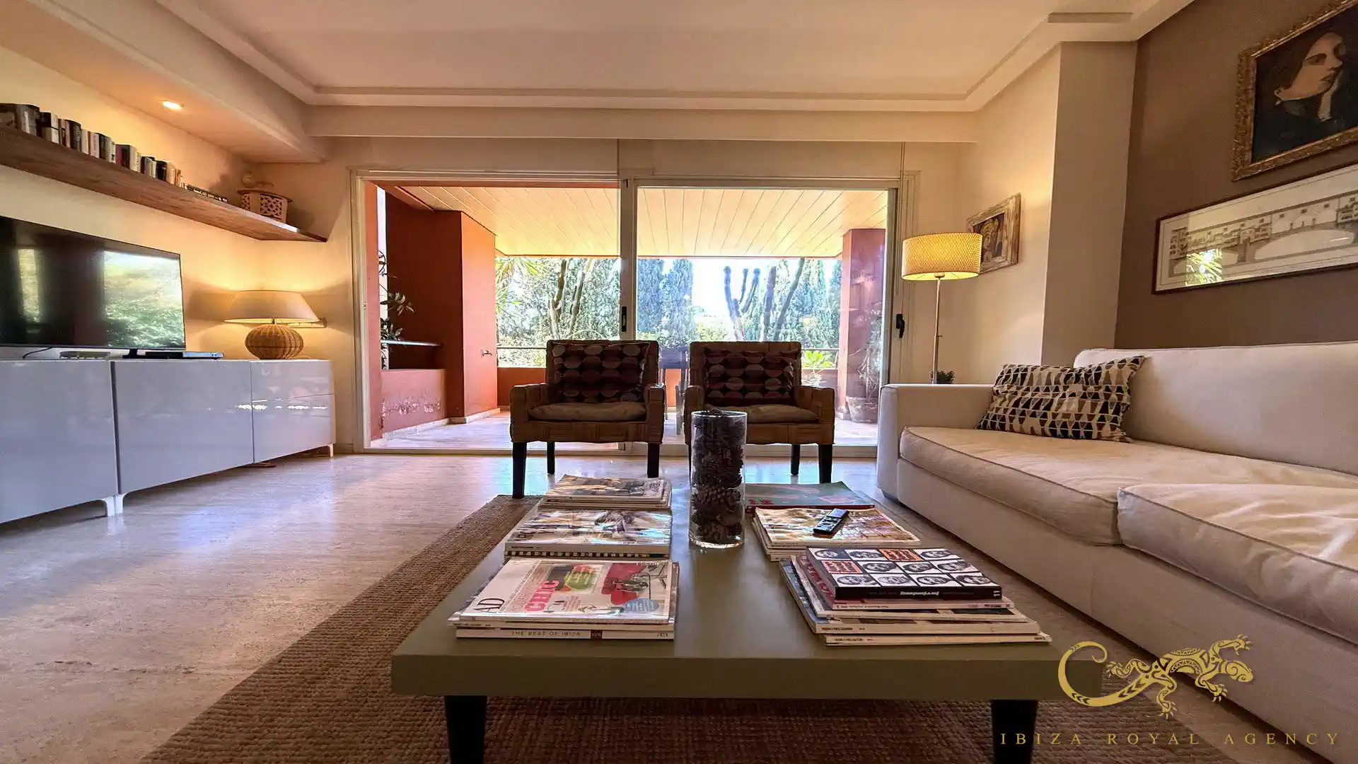 De woon- en eetkamer vormt het hart van de woning en biedt directe toegang tot het privéterras. Deze buitenruimte is perfect om te ontspannen, te genieten van het mediterrane klimaat of buiten te dineren. De vloeiende overgang tussen binnen en buiten zorgt voor een aangename leefervaring en versterkt het gevoel van ruimte en comfort.