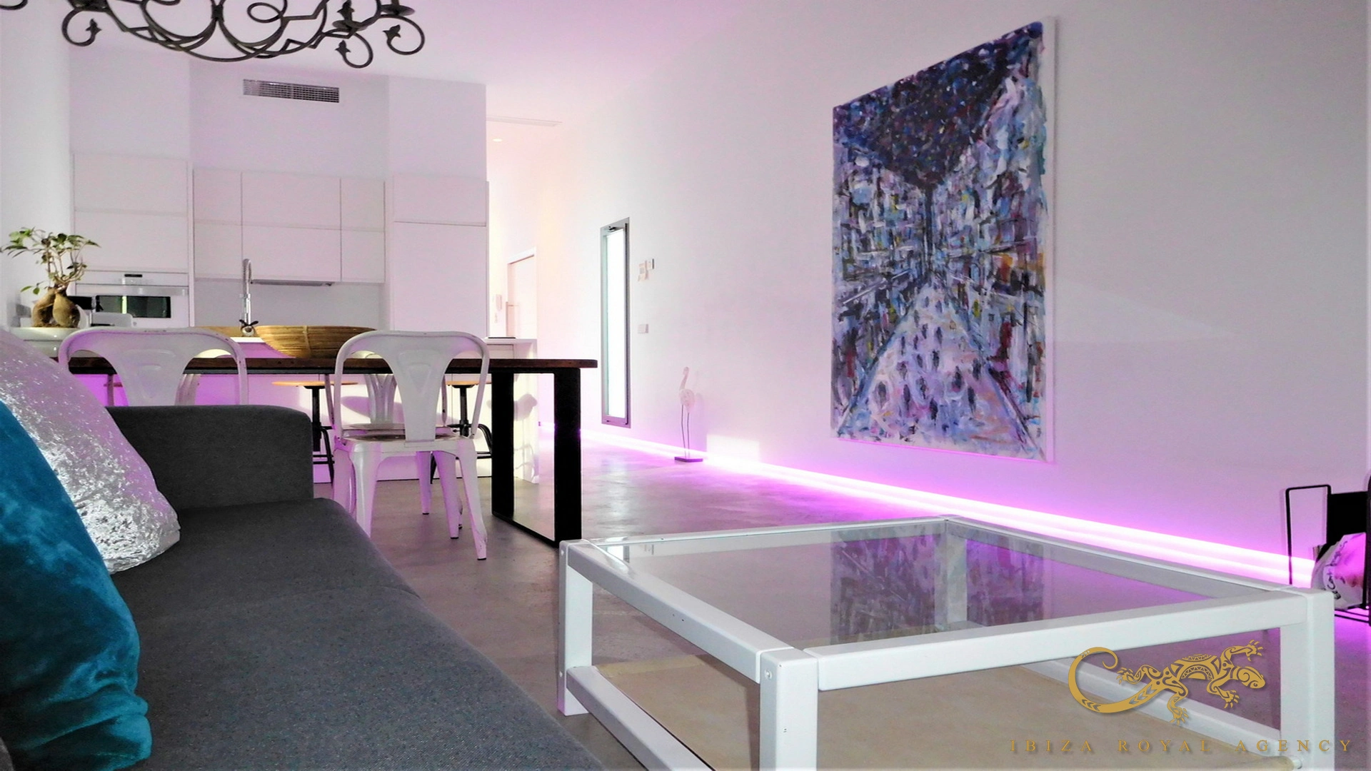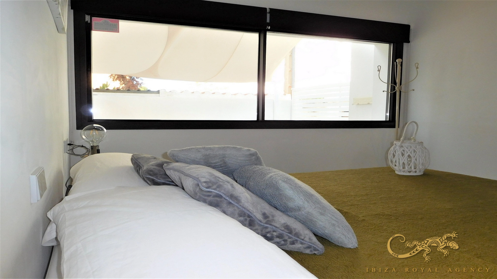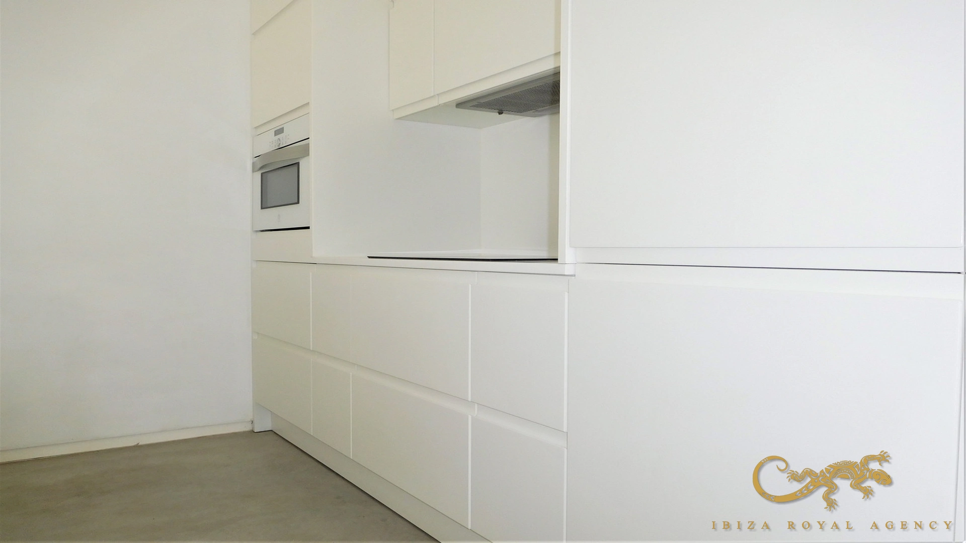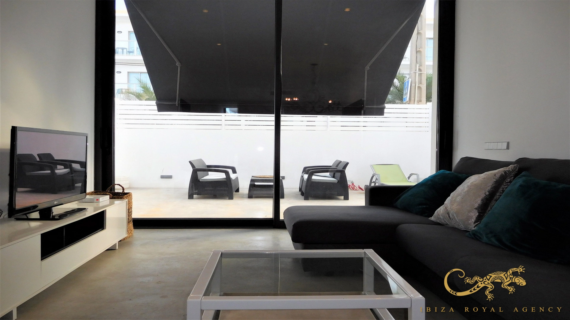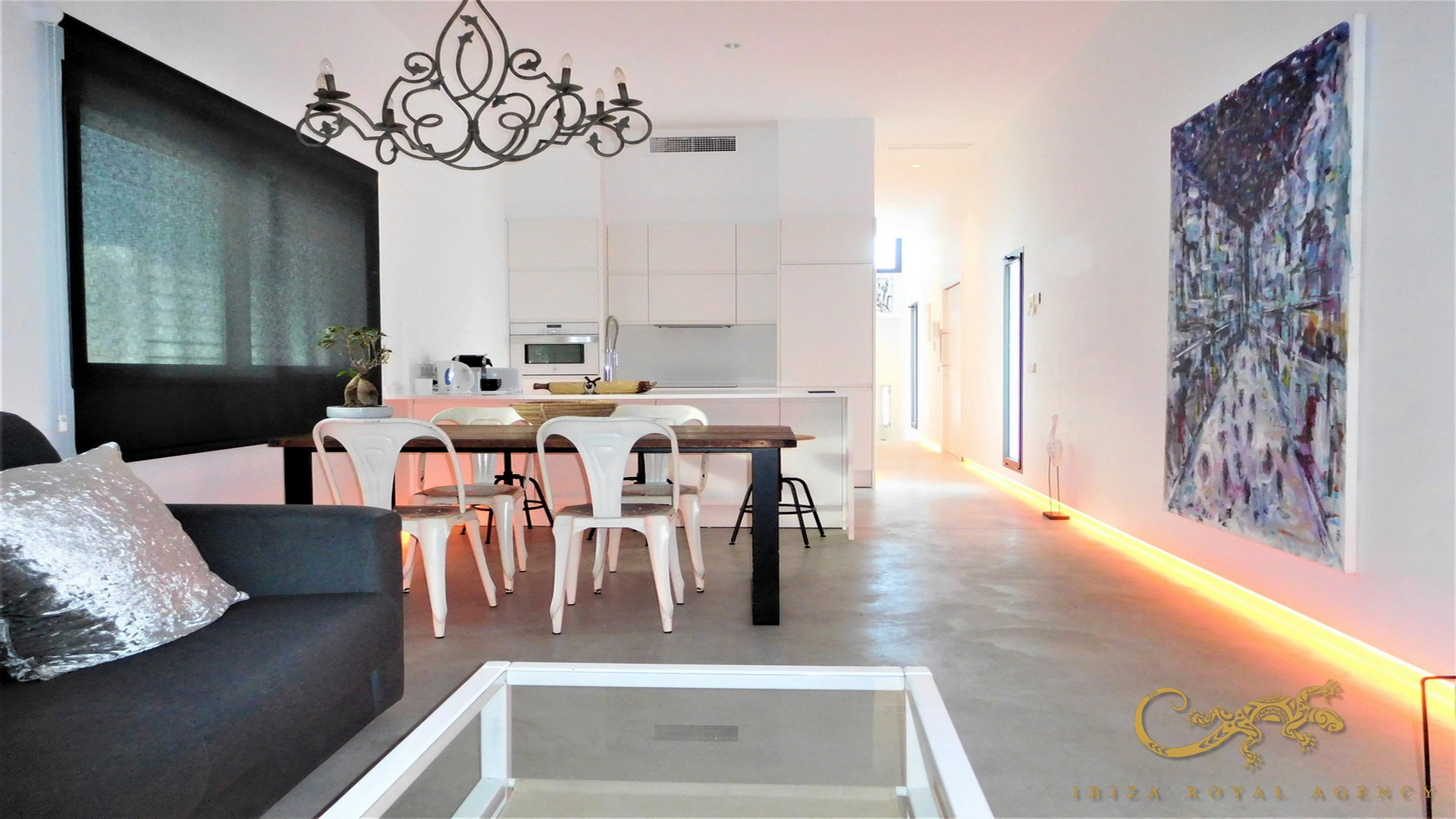 Deze woning van 120 m² in Sant Antoni de Portmany combineert modern design en functionaliteit. De ruime woonkamer is verbonden met een open, volledig uitgeruste keuken en biedt directe toegang tot de patio, wat zorgt voor een lichte en gezellige sfeer. De woning beschikt over twee tweepersoonsslaapkamers, waarvan één met een en-suite badkamer, en twee volledige badkamers met inloopdouche.