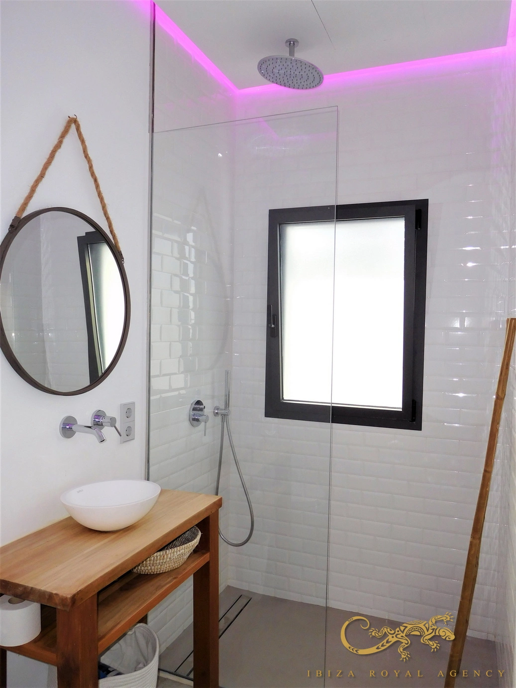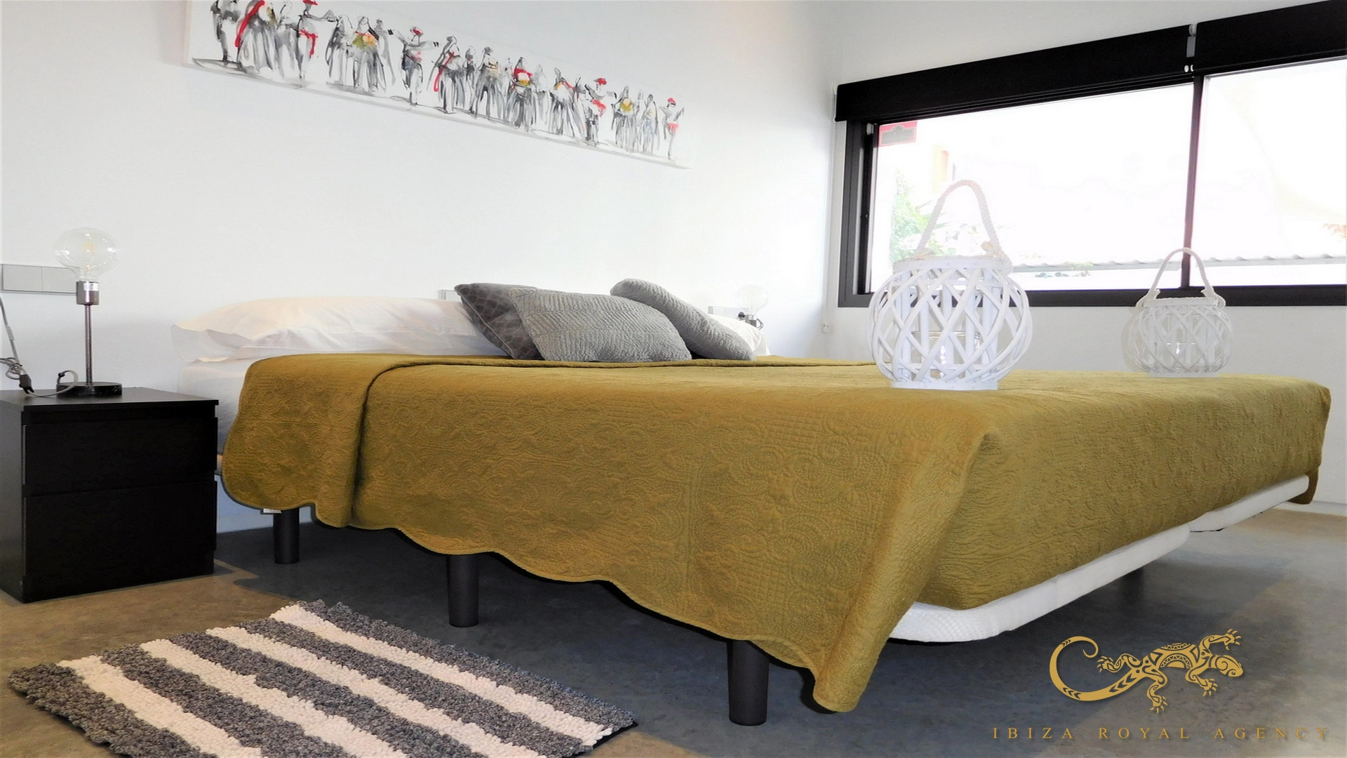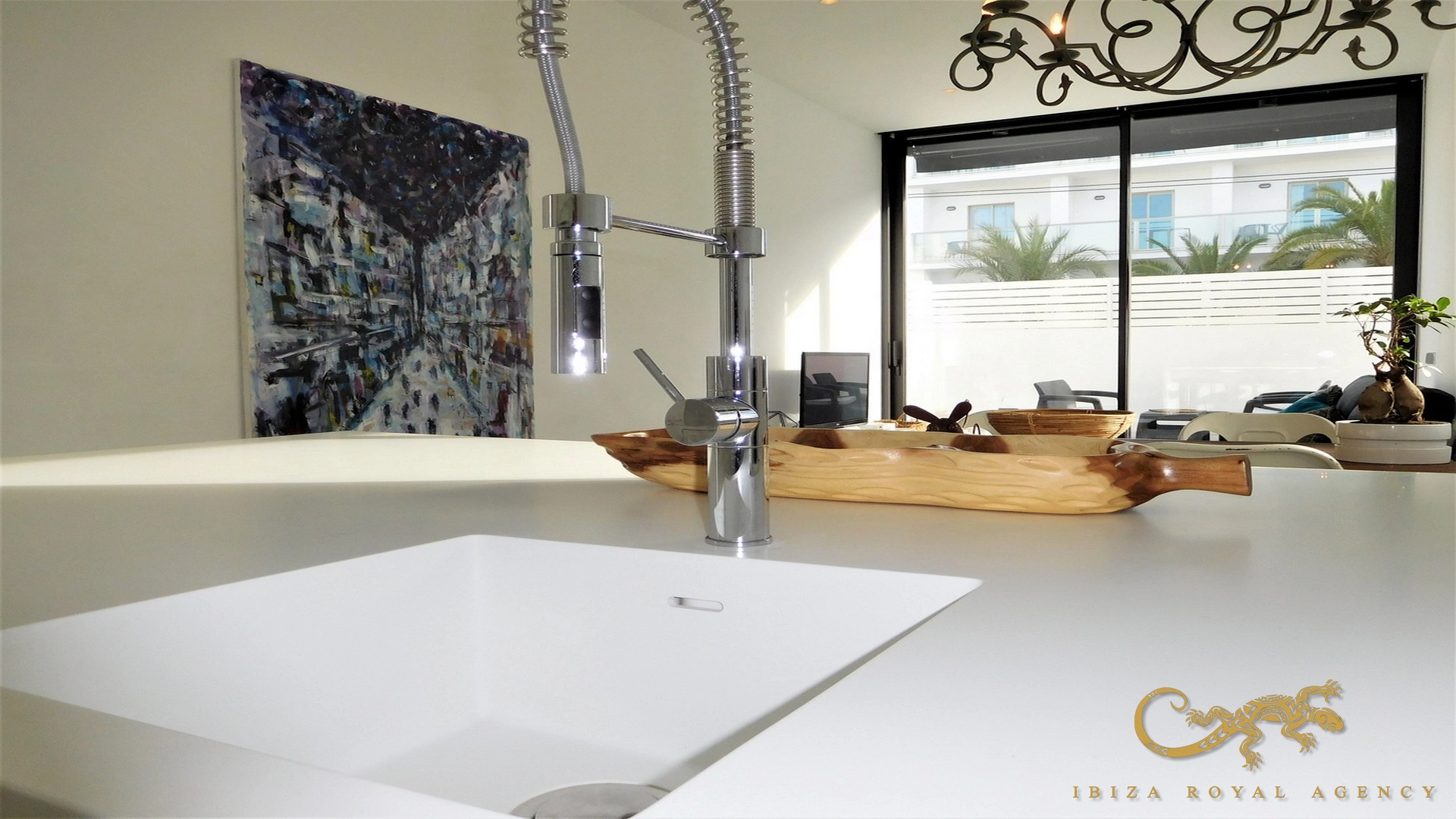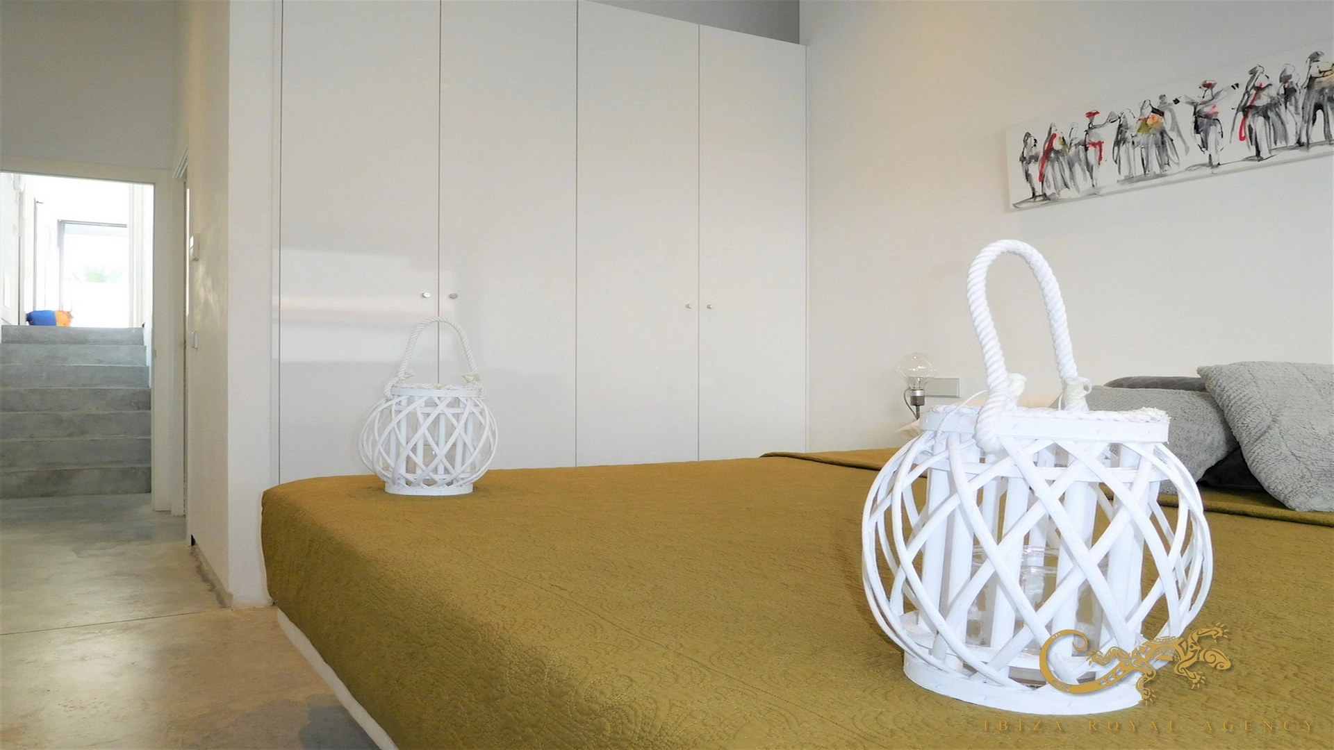 Deze woning van 120 m² in Sant Antoni de Portmany combineert modern design en functionaliteit. De ruime woonkamer is verbonden met een open, volledig uitgeruste keuken en biedt directe toegang tot de patio, wat zorgt voor een lichte en gezellige sfeer. De woning beschikt over twee tweepersoonsslaapkamers, waarvan één met een en-suite badkamer, en twee volledige badkamers met inloopdouche.