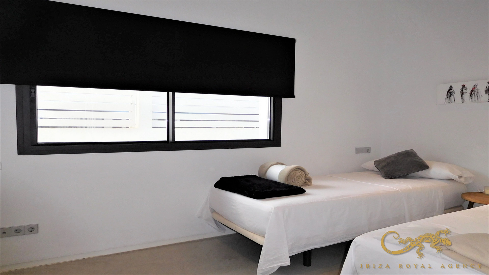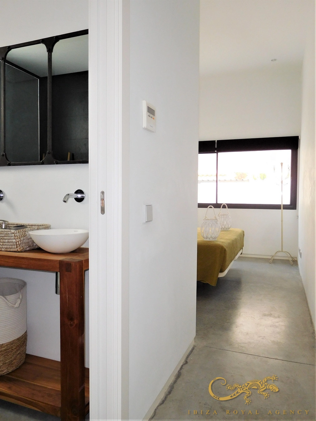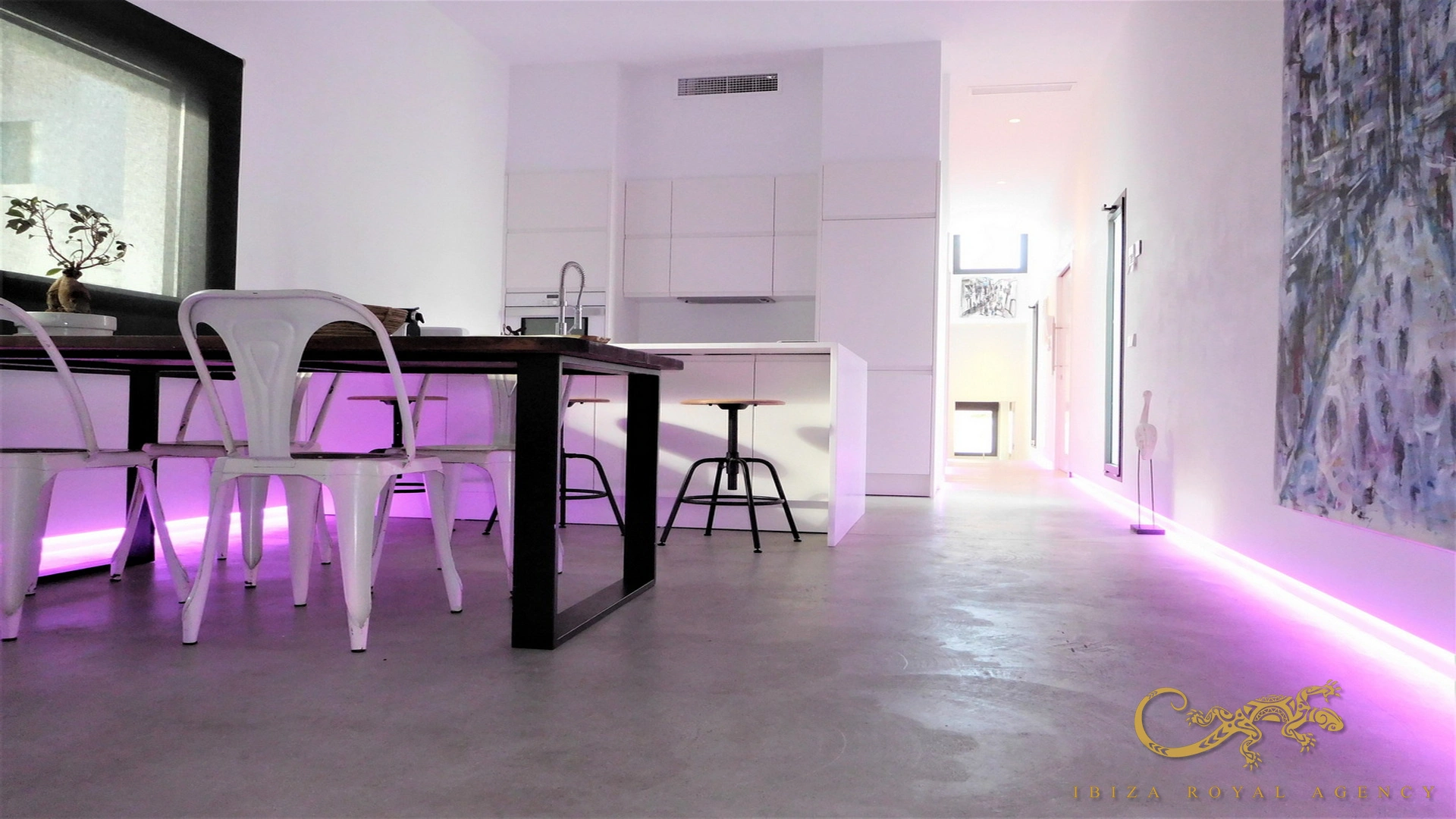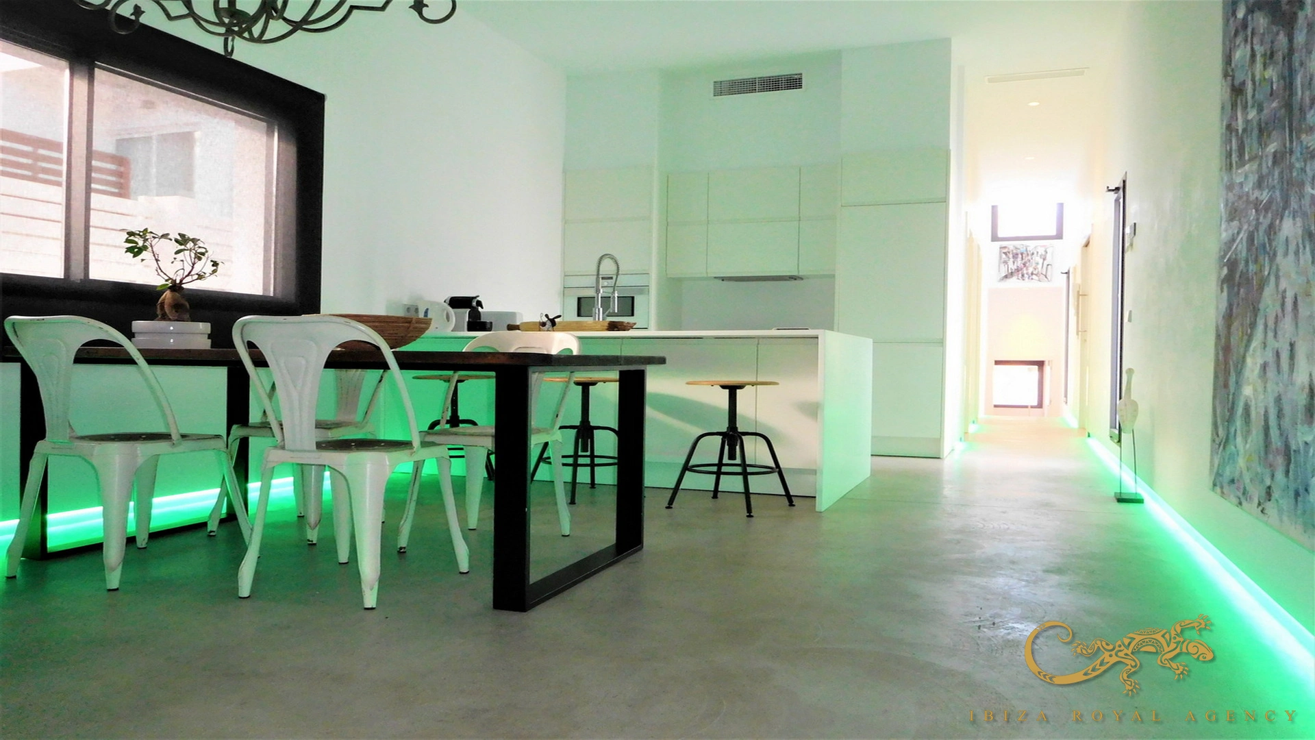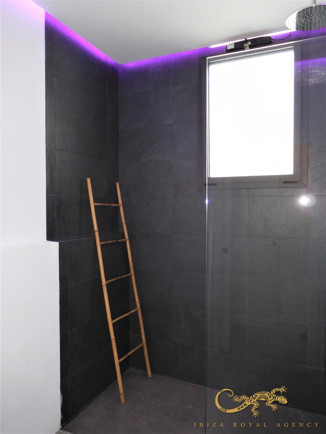 Deze woning van 120 m² in Sant Antoni de Portmany combineert modern design en functionaliteit. De ruime woonkamer is verbonden met een open, volledig uitgeruste keuken en biedt directe toegang tot de patio, wat zorgt voor een lichte en gezellige sfeer. De woning beschikt over twee tweepersoonsslaapkamers, waarvan één met een en-suite badkamer, en twee volledige badkamers met inloopdouche.