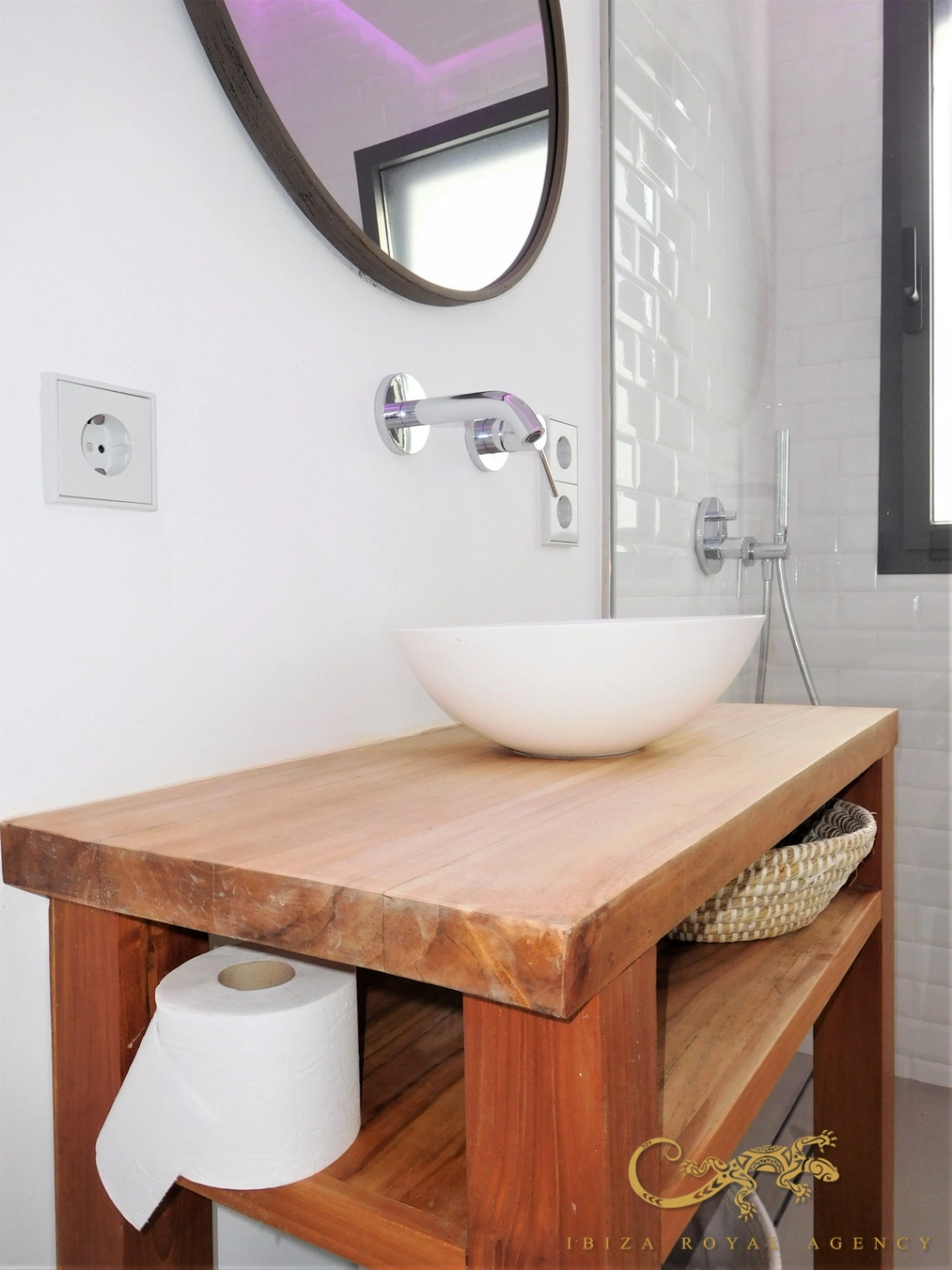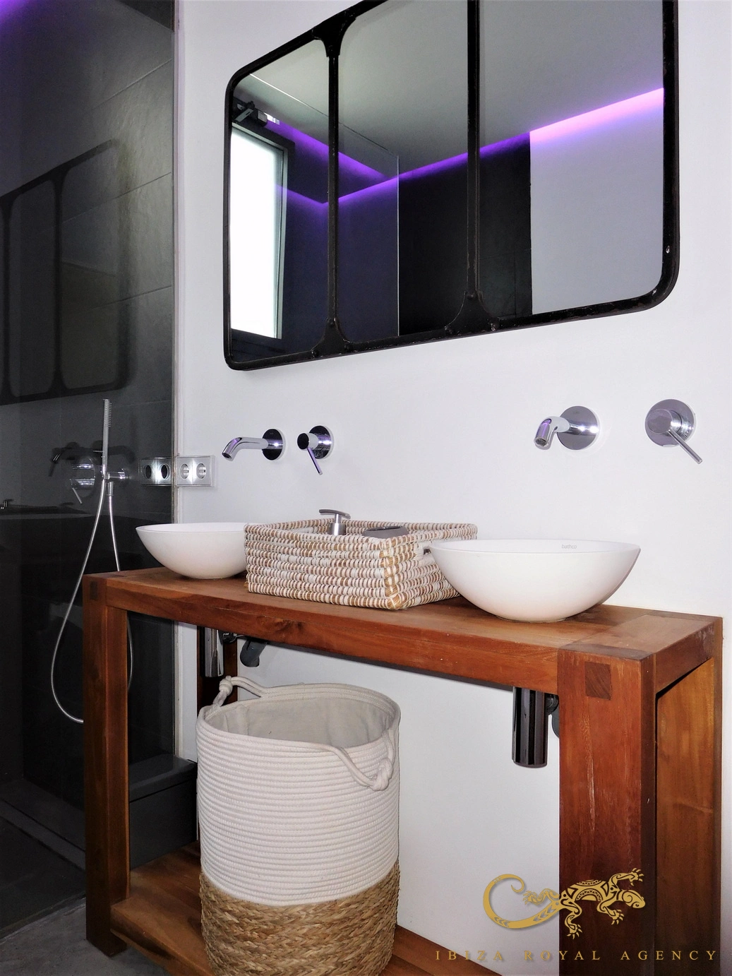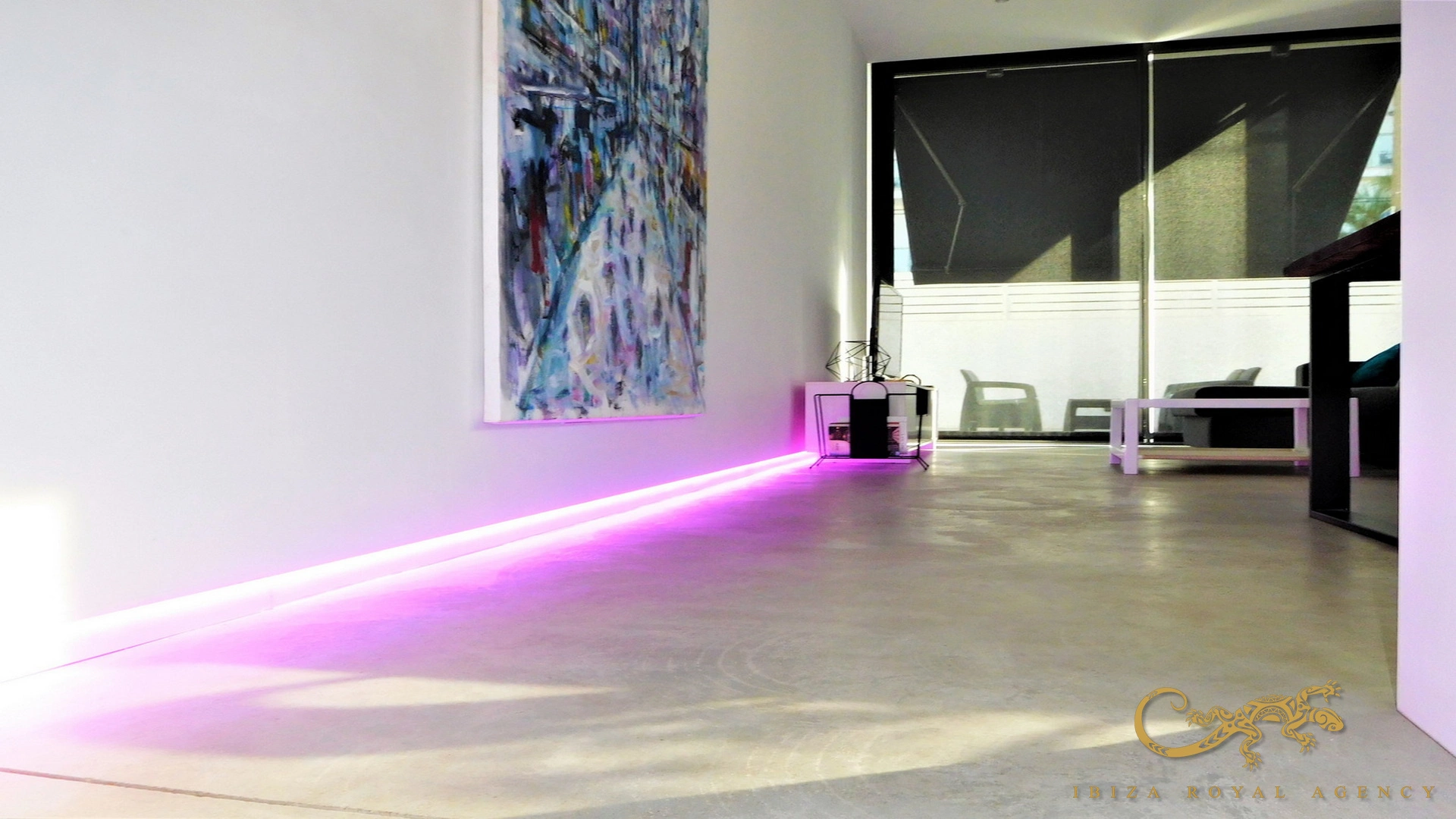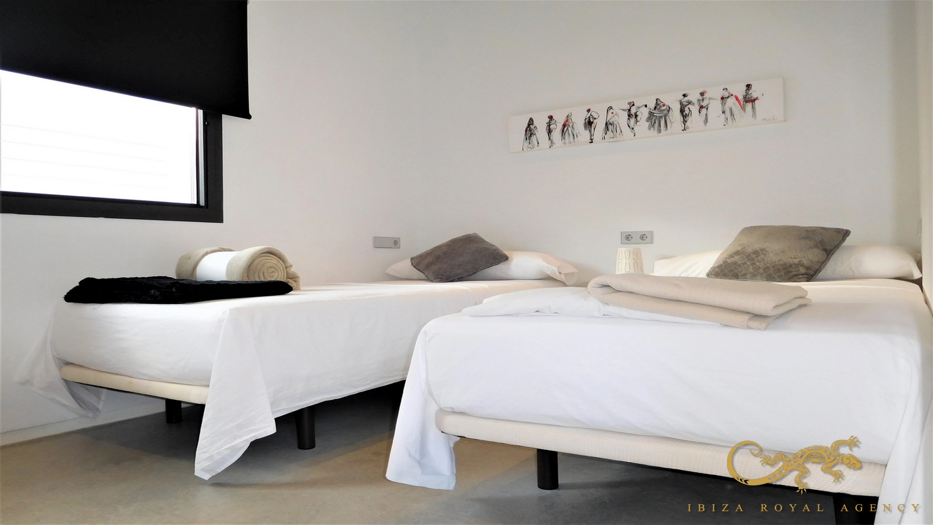 Deze woning van 120 m² in Sant Antoni de Portmany combineert modern design en functionaliteit. De ruime woonkamer is verbonden met een open, volledig uitgeruste keuken en biedt directe toegang tot de patio, wat zorgt voor een lichte en gezellige sfeer. De woning beschikt over twee tweepersoonsslaapkamers, waarvan één met een en-suite badkamer, en twee volledige badkamers met inloopdouche.